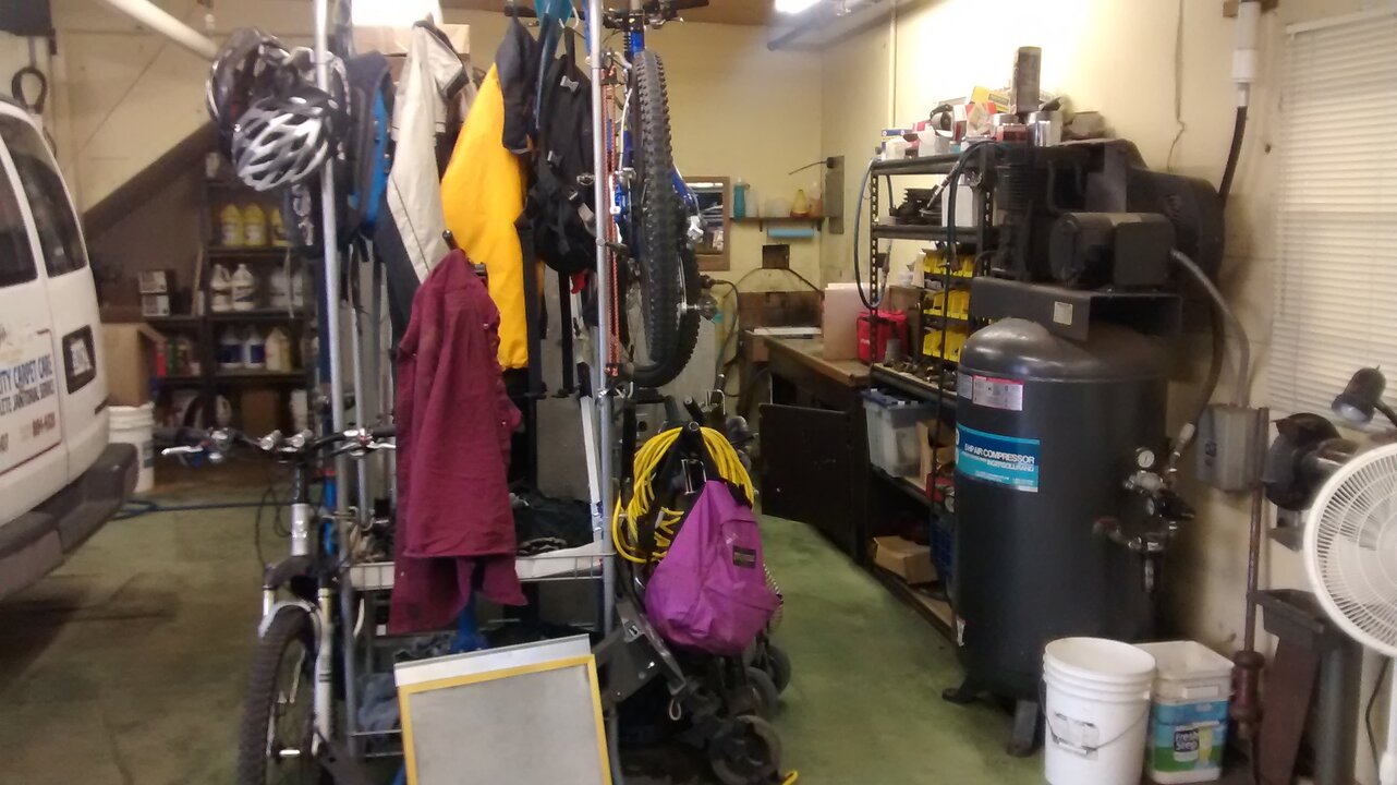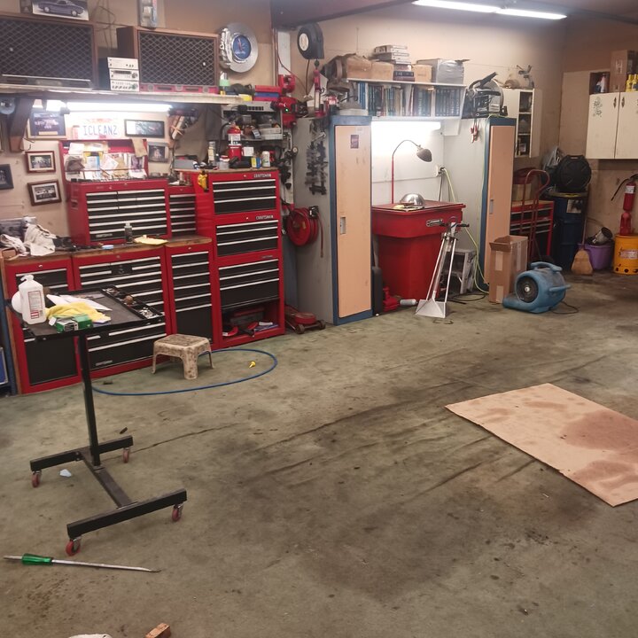 Too bad ya can't do the challenge, its pretty straightforward. This is how the carpet looks today. I would divide it into 3 spaces. The challenge is the top 2. The bottom right had 5qts of transmission oil spill on it. It can be made to look presentable but will never come completely clean. During the challenge i will clean it but the challenge is the upper part by the bench. The carpet is not tacked down and there's a blue tarp underneath as a barrier. So the carpet cal be rolled back to record exactly how much dirt and moisture i really push thru when i "soak the crap outa it and push all that dirt down into the pad". Im going to have to clean it over the Christmas holiday cus im tired of looking at it. You need to update your profile it says your in Utah. That would've only been an 800 or so mile trip.Dwain, that is a GREAT SHOP !!! Working men shop! Love it !!