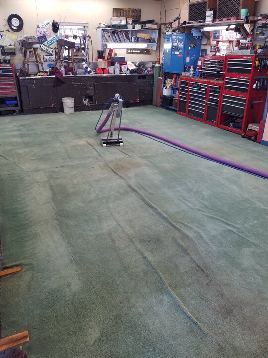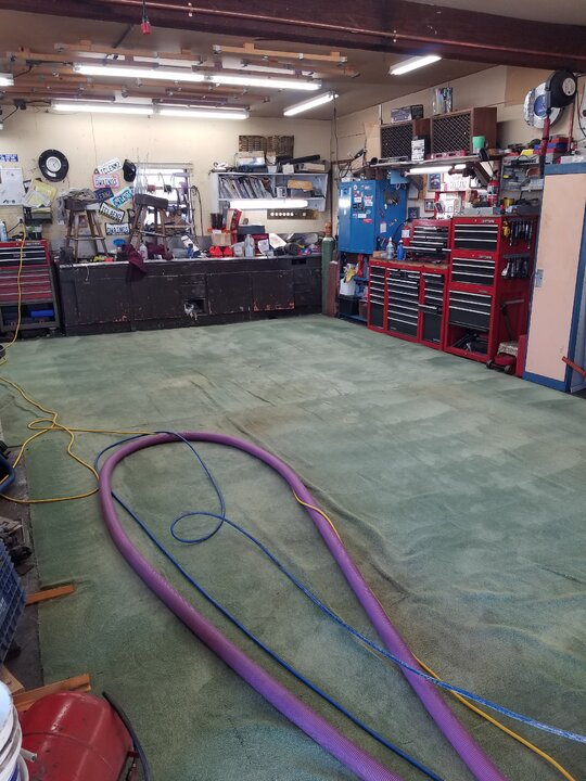Any time i can take my shoe off, i will.My shop carpet at one time was installed in a moderate to high end motel. They were replacing all there rooms carpet i offered to haul away 5 rooms worth if they left them whole and cut them square i had um then cut to fit and seamed together so when i drove on them they wouldn't split apart and would lay relatively flat. This carpet is the second one in 37 years thats been in this shop. And was destined for the dumpster when i got it a couple of decades ago. Ive held off cleaning this time it because im activity looking for a replacement. I may even go new this time, that way ill only have 2 seams. 1 long 12'× 32' piece across the back with a 12' × 14' down each of the 2 bays so id need only 60' off a 12' wide roll each bay will still be carpeted 14×24. I do all my own maintenance and repair on equipment and vehicles. I dont own a creeper cus its like changing oil in my livingroom. There's times i turn up the heat, kick off my shoes and wench. Only problem doing repair on wall to wall carpet is if you drop a tiny part you can't hear which way it rolled. Ive convinced several dyr's if there doing maintenance in there garage or driveway to go dumpster diving at a local carpet store and get a piece of carpet to work on and when it gets too dirty toss it and pickup another