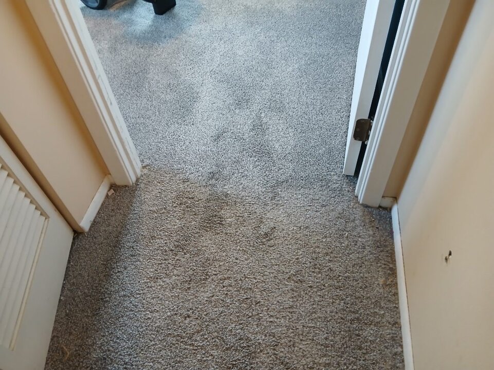 That's a picture looking from the Hall into the Bedroom after I cleaned Bedroom. Hall was brown from dirt