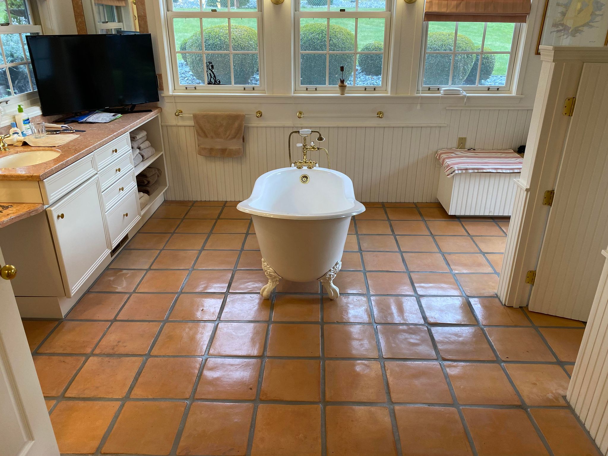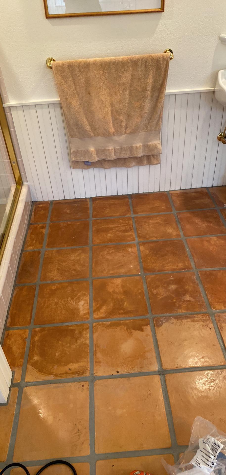 Im not sure how to discribe this situation of a carpet cleaner who (must?) be suffering from a lack of work, who thought it would be a good idea to strip a Saltillo floor for an elderly lady who called to complain that she was slipping when coming out of her shower.