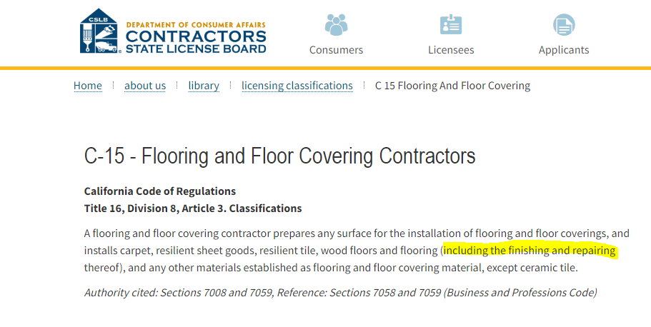 Require a contractor's license to clean and repair grout and polish floors and counters. I don't think so..