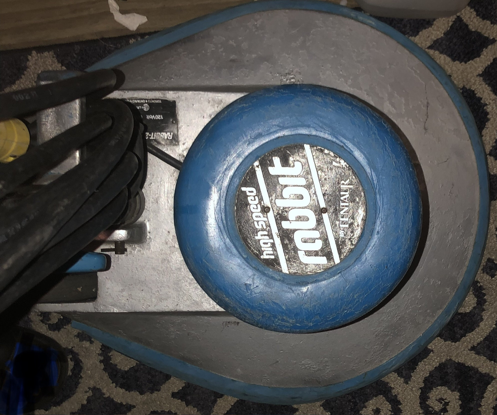 Missing barbed hollow bolt sits on the deck of a side-by-side, the solution hose runs from the solution tank in fits onto the metal barb and drips the solution onto the pad driver.