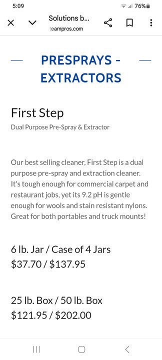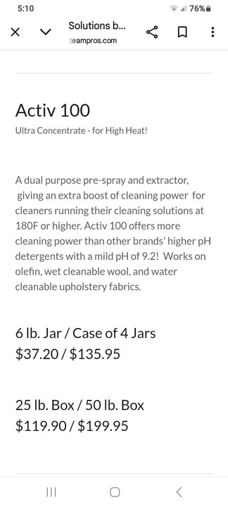 I have used hd100 from soulitions by steam pros as my emulsifier and first step as my prespray for about 25 years now and love it i buy it by the 50lb box and when i buy 2 i get a 25lb box of my choice free to offset some of the shipping i generally buy 200lbs assorted at one time and get a 50lb box free 250 lbs of powder generally lasts me about 8 to 10 months