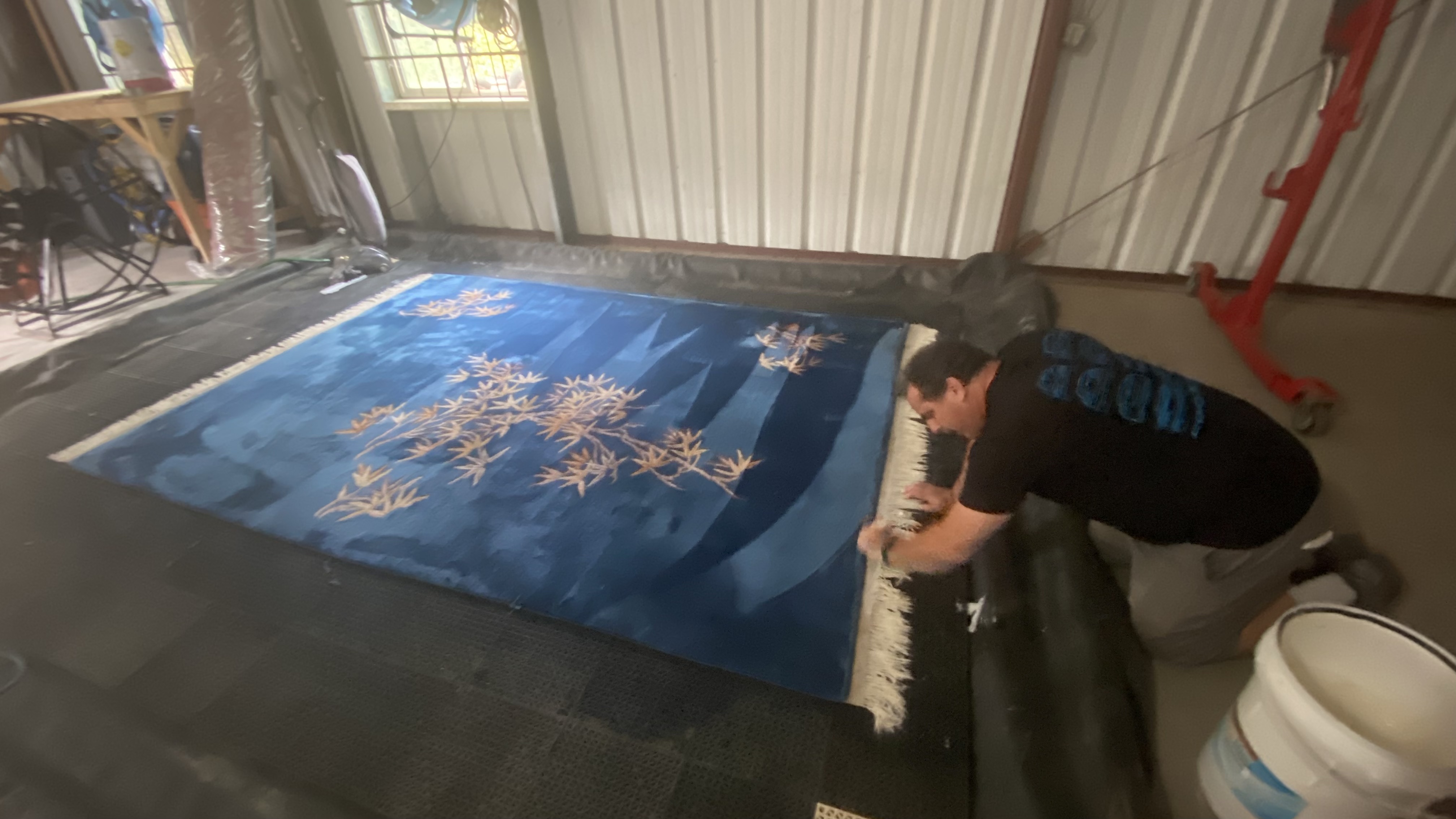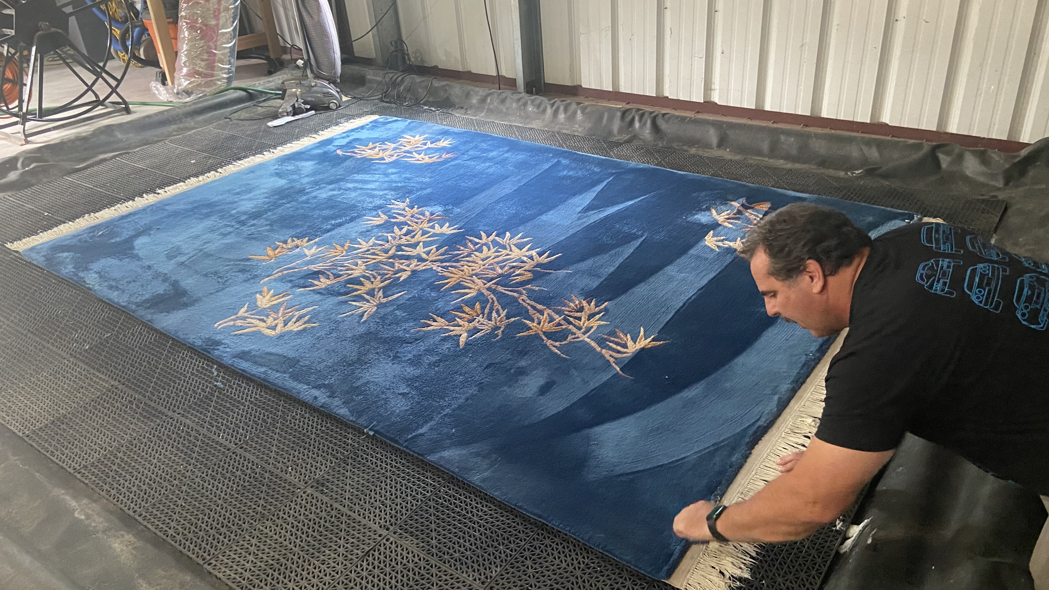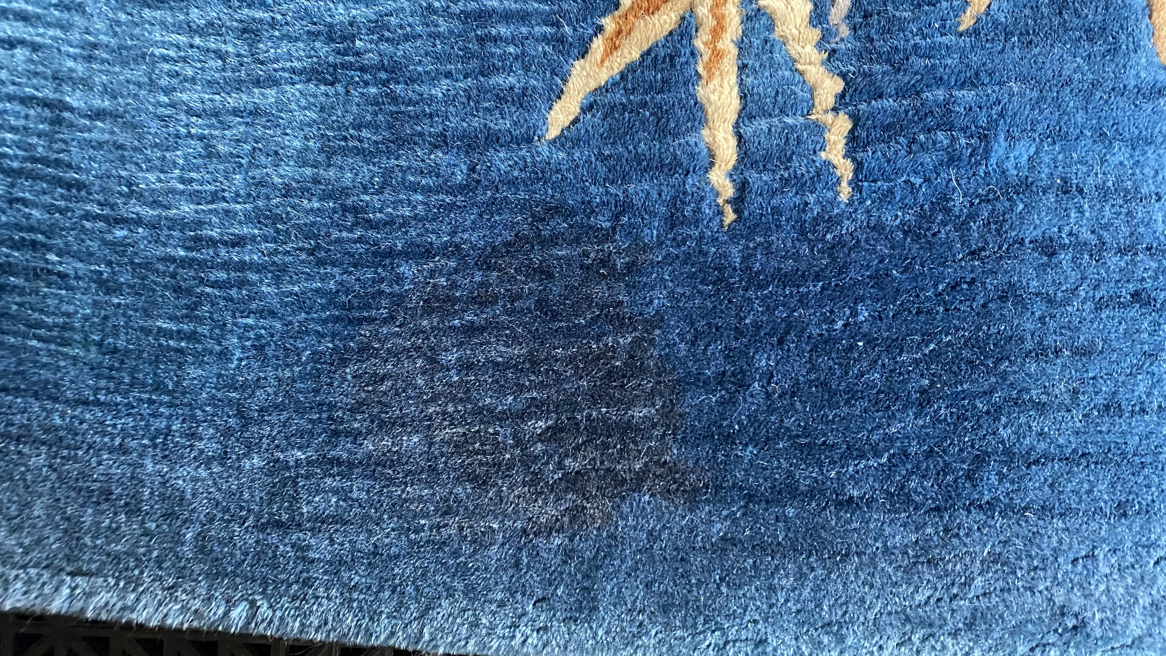 Beautiful blue rug ruined by dog vomit