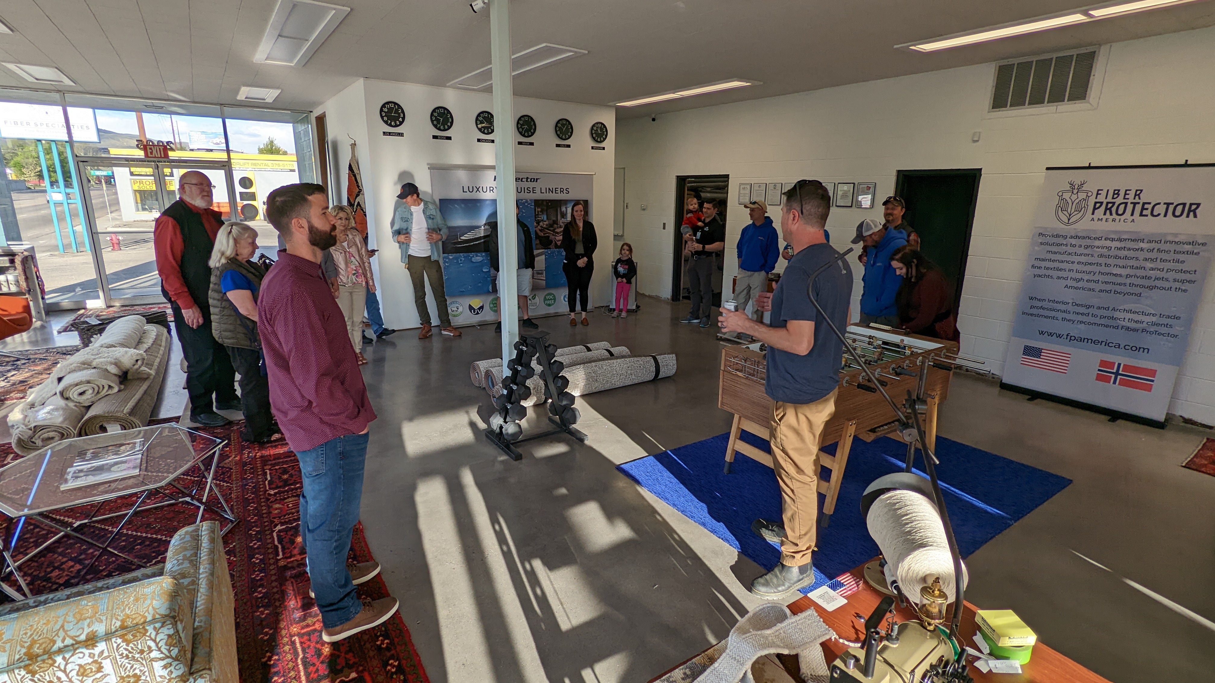 Devin Frizzell with Fiber Specialties/ Fiber Protector America, It would have been a real nightmare to have had to clean the 10 area rugs onsite, and if you saw the video, they definitely needed pit washing after just two years of use. Taking all the heat off me by hosting the meet and great and covering the tab was also GREATLY APPRECIATED!! And donating the application of FPA on ALL the furniture we cleaned was just over the top, bravo!!