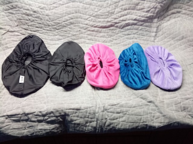 I always left plastic booties with the customers. When I was at Jon Don last spring I picked up enough for the year but somehow got the fabric ones. I think I prefer the plastic better because it would keep the customers feet/socks dry where the fabric ones let the moisture through.