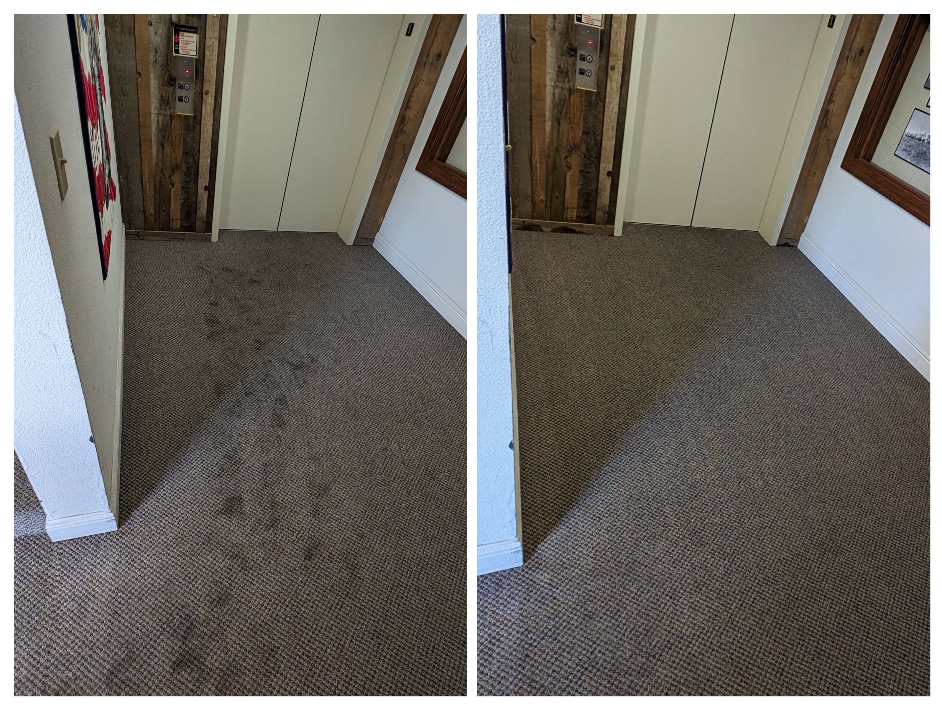 I was there a few months back for a presentation and noticed all those horrible spots and told them I would clean it in the main hallway up at no charge since it's a non-profit turns out they brought a crew in and prepped about 5,000 ft of hallways three staircases and countless display and meeting rooms, so I just went for it...