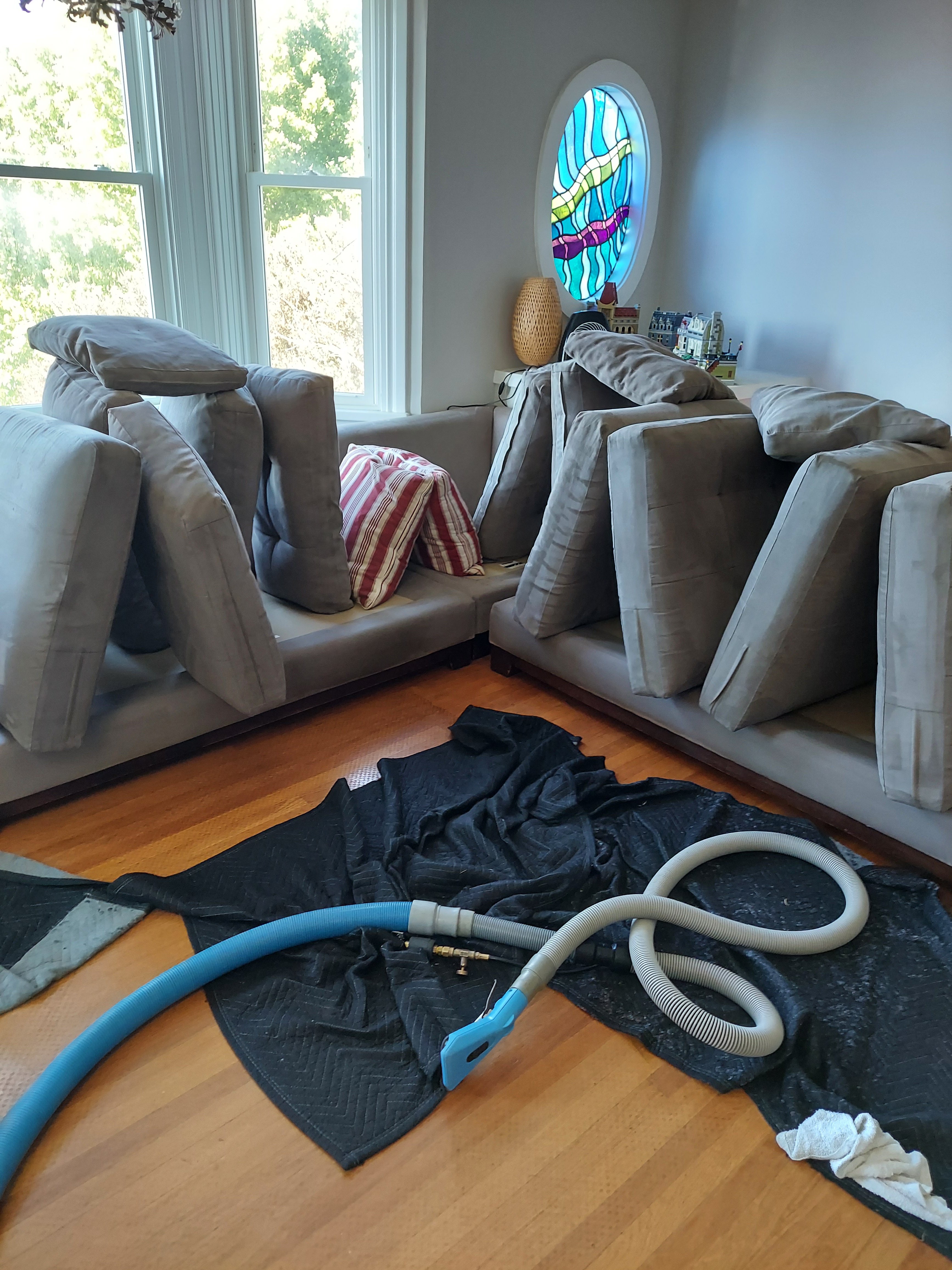 and inform the customer to flip the cushions in a few hours so the the touching sides can dry.