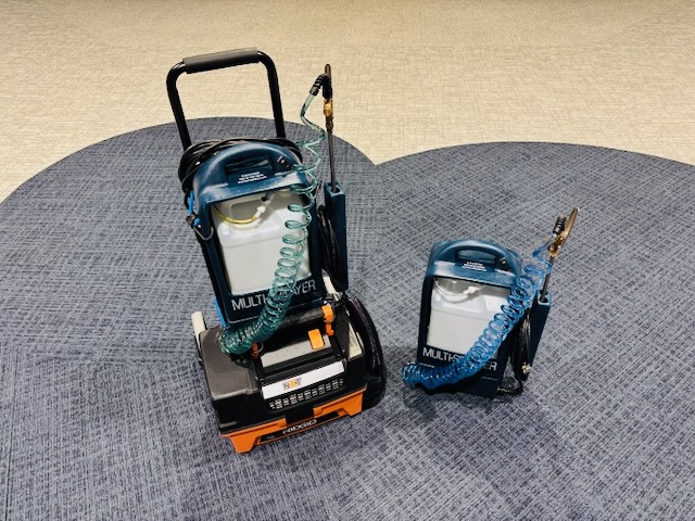 One of the buildings I clean had two Multisprayers ($500 each new) unused since the COVID days. They said I could have one if I would set up the other as a spotting system for the building manager to use between cleanings. I found this Rigid wet-dry-vac and put the two on a hand truck from Harbor Freight. $200 total.
