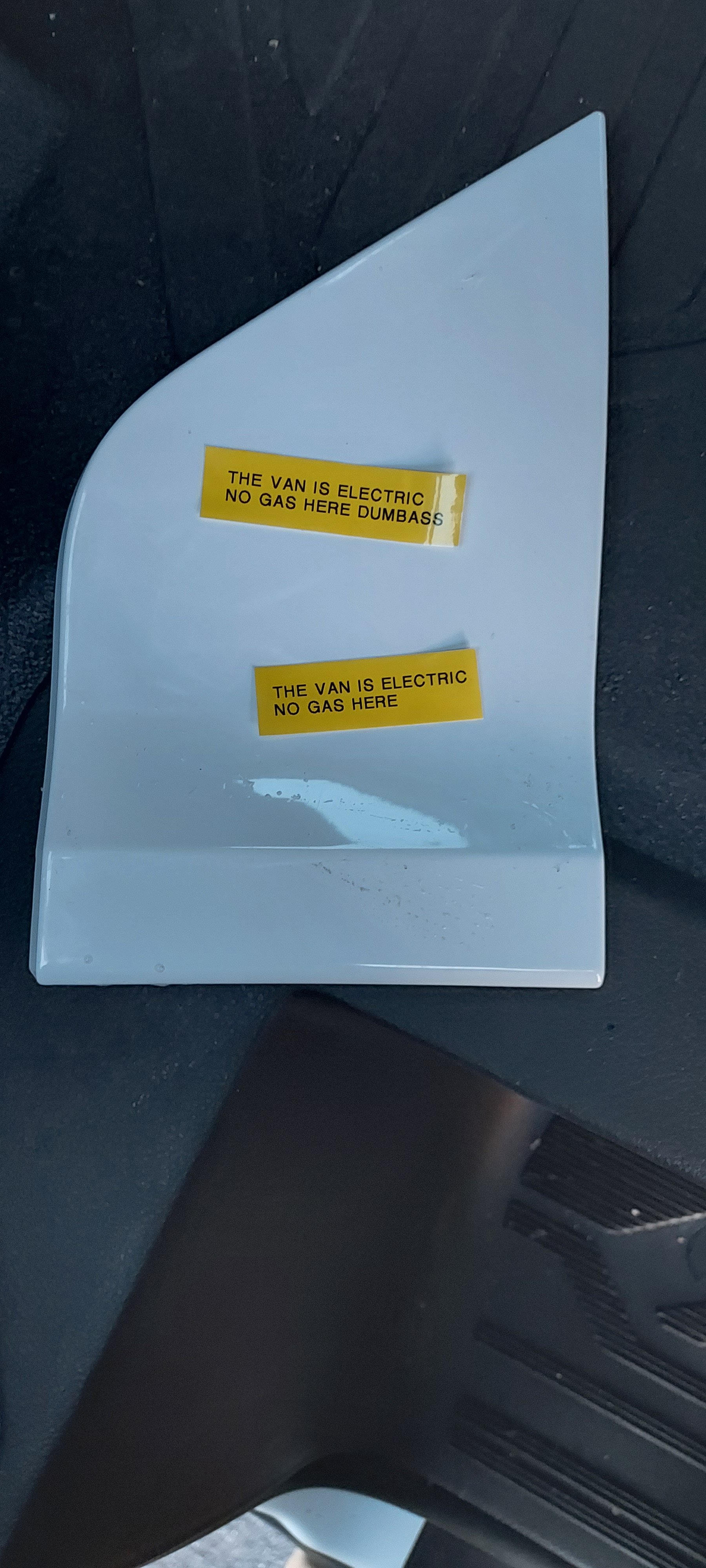 So someone pulled the "gas door" off on my new E-transit in an attempt to steal gas from it.
