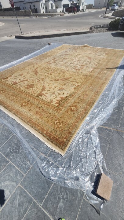 Any suggestions as it would take a really special home for a handmade rug this large. Will roll it out tomorrow on the driveway being careful to clean the surface first. Looks to be in immaculate shape came from home with no kids or pets....Suggestions or any relevant information to share? I am even wondering if one of our clients who runs a local private school classified as a museum might be interested so it can go to good use, really don't want to store it.