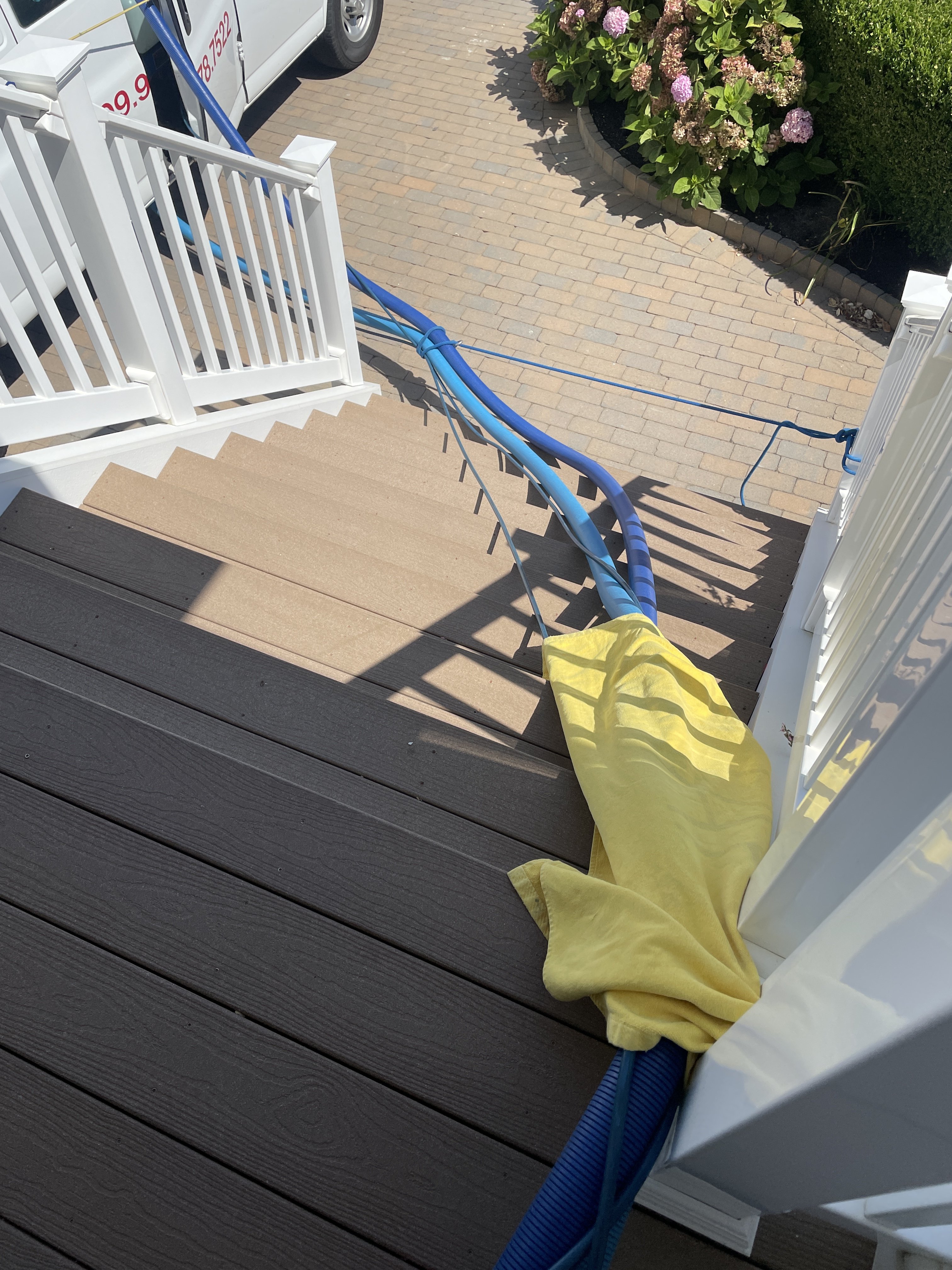 When people see we go the extra mile to take care and respect their nice homes and belongings, they always appreciate it. No other place to park, I felt my exhaust was a little close to the car. put up a plastic shelf with a towel so I didn't cause any problems.