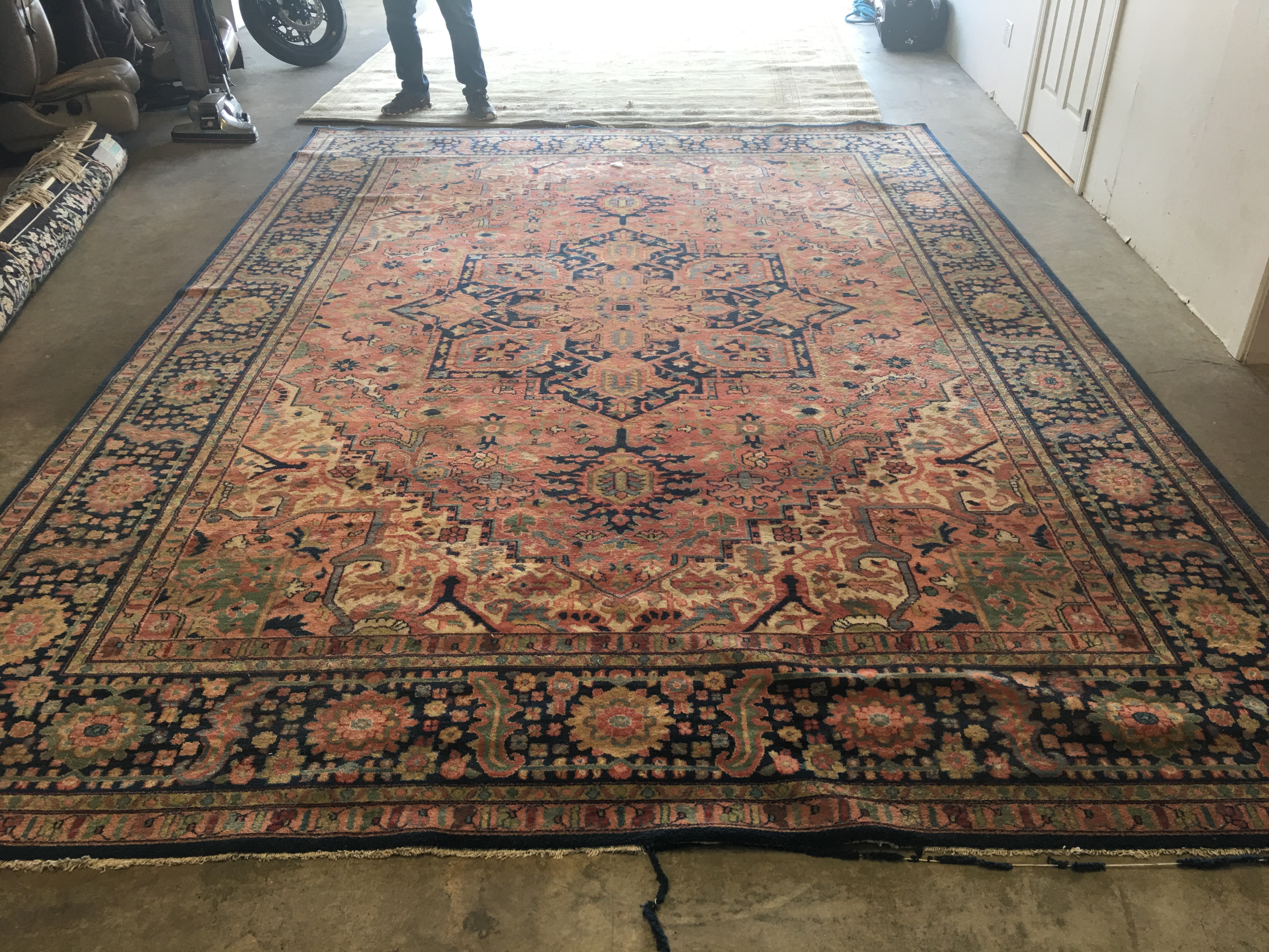 Well, I now have a better appreciation and understanding for the rug plants. I’ve been working on a bunch of 10’x14’ Karastan rugs for over a week. These things were stored in a barn on the dirt floor for years. I finally cleaned the last one this evening and it’s drying in my shop.