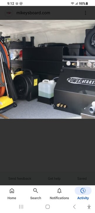 Thank you Mr Nate, i forgot his name but during the interview I thought it was only right to point out Not everything was my own bright idea, and that like many others on MB i too have benefited and continue to benefit from this fourm and community of cleaner's. Another couple of ideas i got from this fourm that i incorporated into the building of frankinstien came from Bob vawter i found this old picture of one of his builds and noticed he was using the same(small) 50 gallon waste tank in an extended van and had room for a shelf in back of it also i got the idea for the logos the first set we made didn't stay on the textured powder coat so my sign guy contacted a buddy of his that made social distance stickers for floors and made the bullet proof logos i have on my maxhine today. Thank you again Mr Vawter