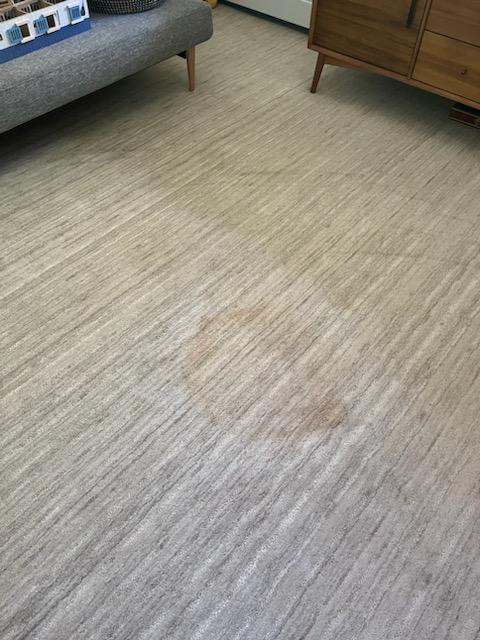 A customers pet had an accident on her Earth weave carpet. The bozo carpet manufacturing repeates mistakes made in the 70's and are using Jute as the backing. I warned the customer of the challenges this Poses.