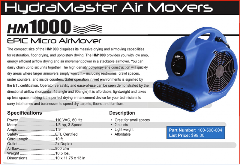 The PERFECT unit to leave behind with customers who need their floors or furnishings dried in a hurry.