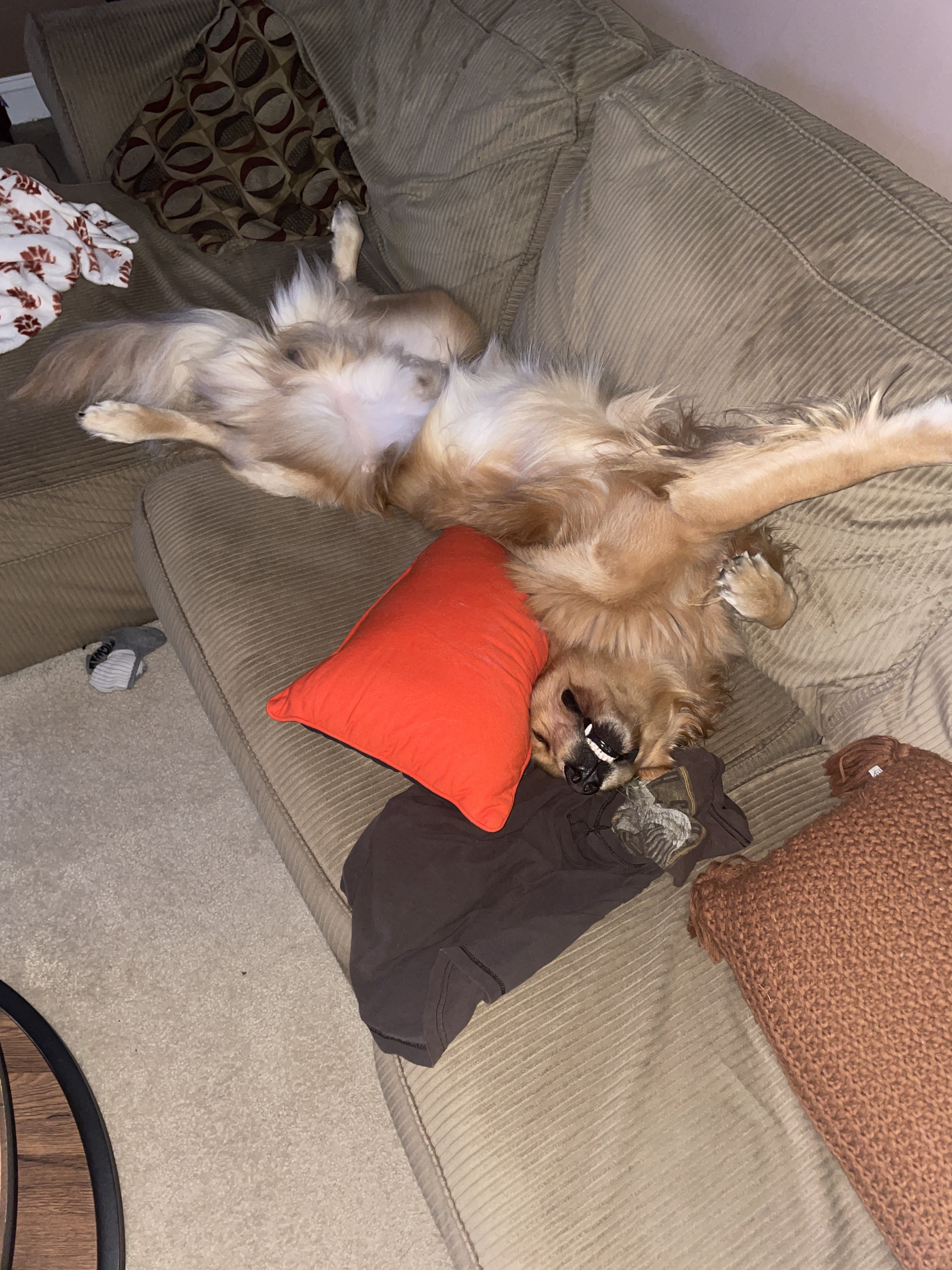 Brian H said: Upside down dog on the sofa pictures? Here's Murphy! View attachment 118690 Click to expand... The only time you’re glad when Murphy rears his head..