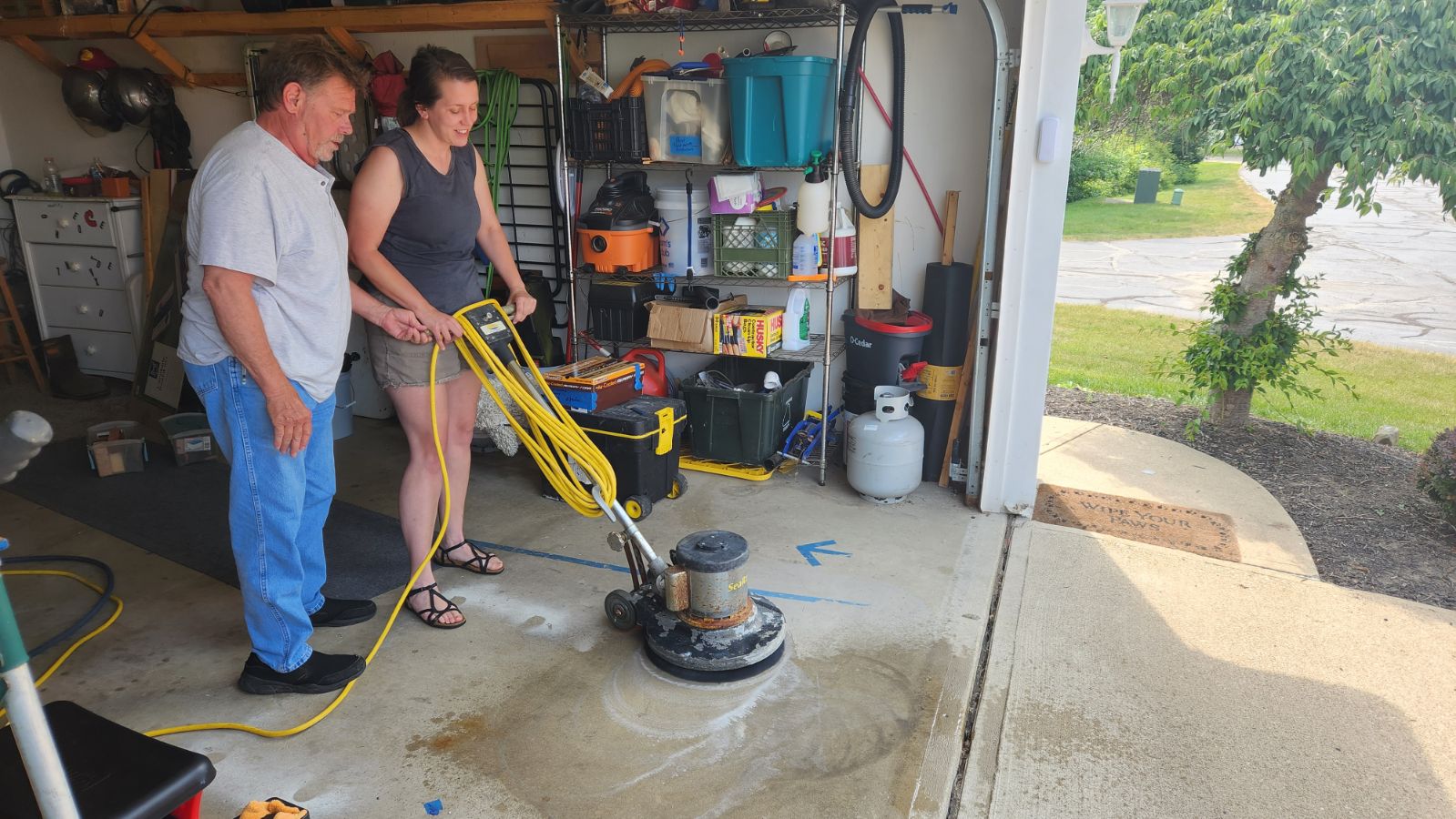 Actually we're in the midst of moving. I want to scrub the unfinished concrete floor of our garage before move out for practice and integrity. I'm a pretty industrious guy and it's a bit murky. Any pad recommendations for lightly honing the surface to make some milk and easily rinse away the filth at 400 psi?