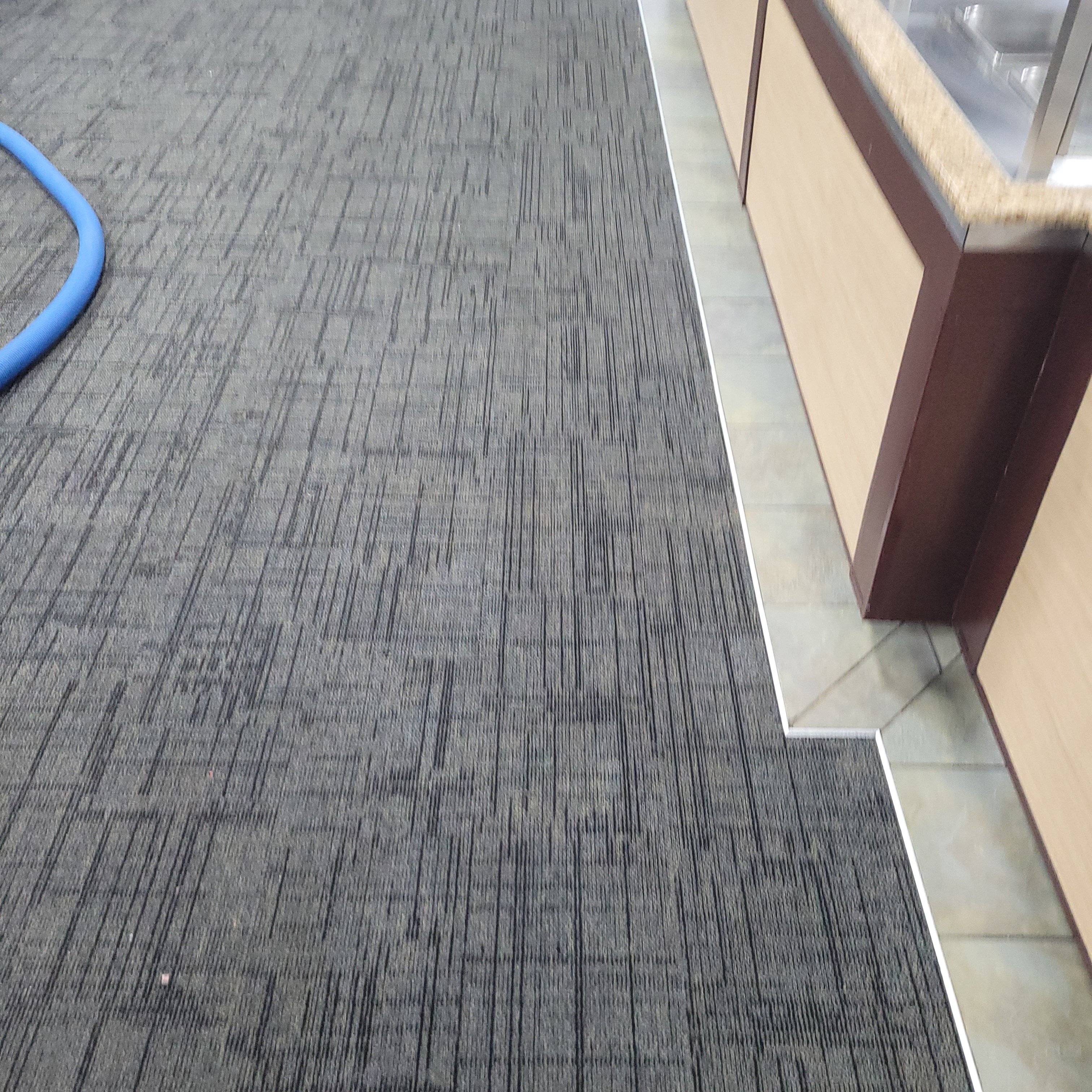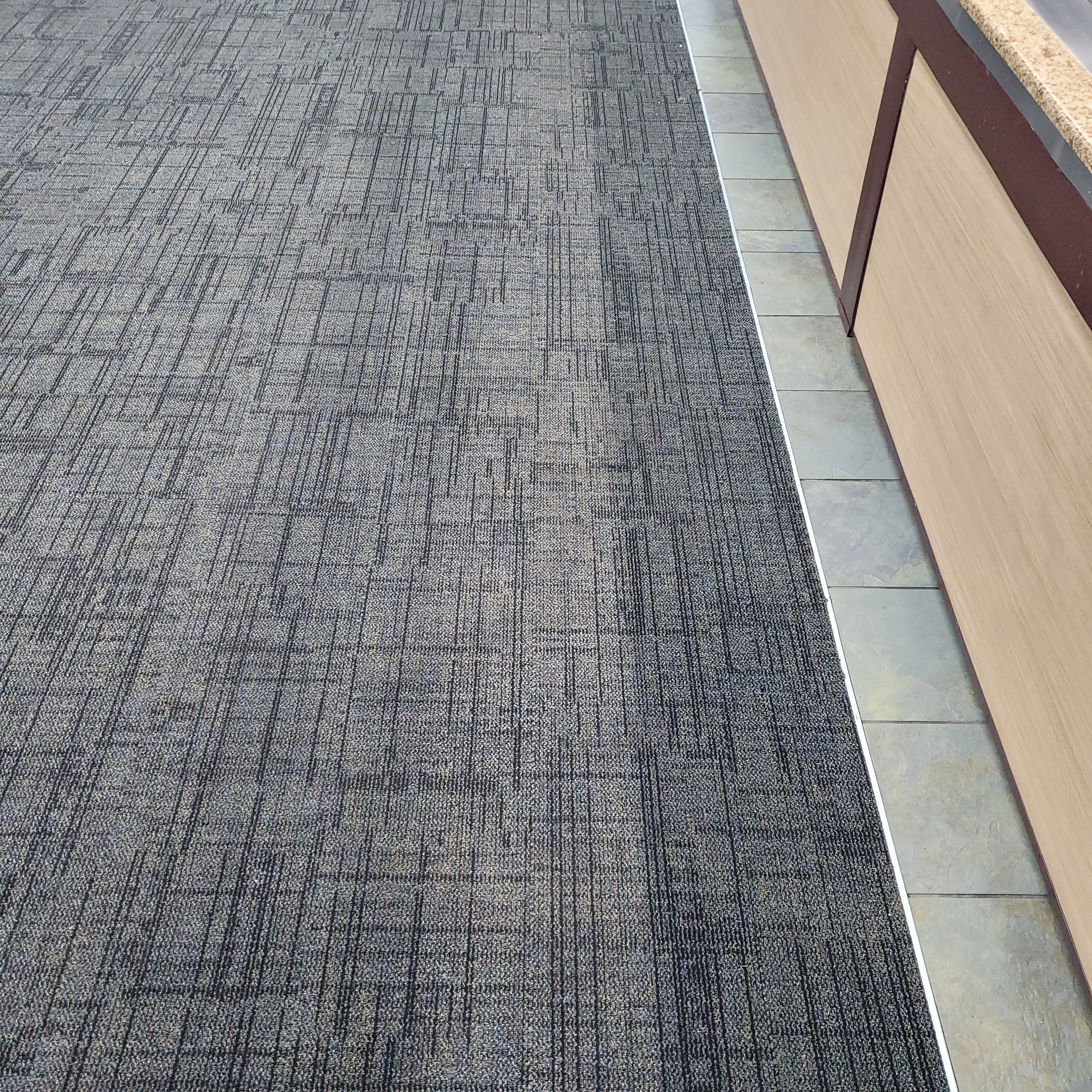 " discolorations" of the carpet. He got a new carpet this year, so he's freaking out every time he makes a discovery. In the first case, small dessert plates hanging on the side of the buffet line were throwing shadows on the carpet. I had to go there a