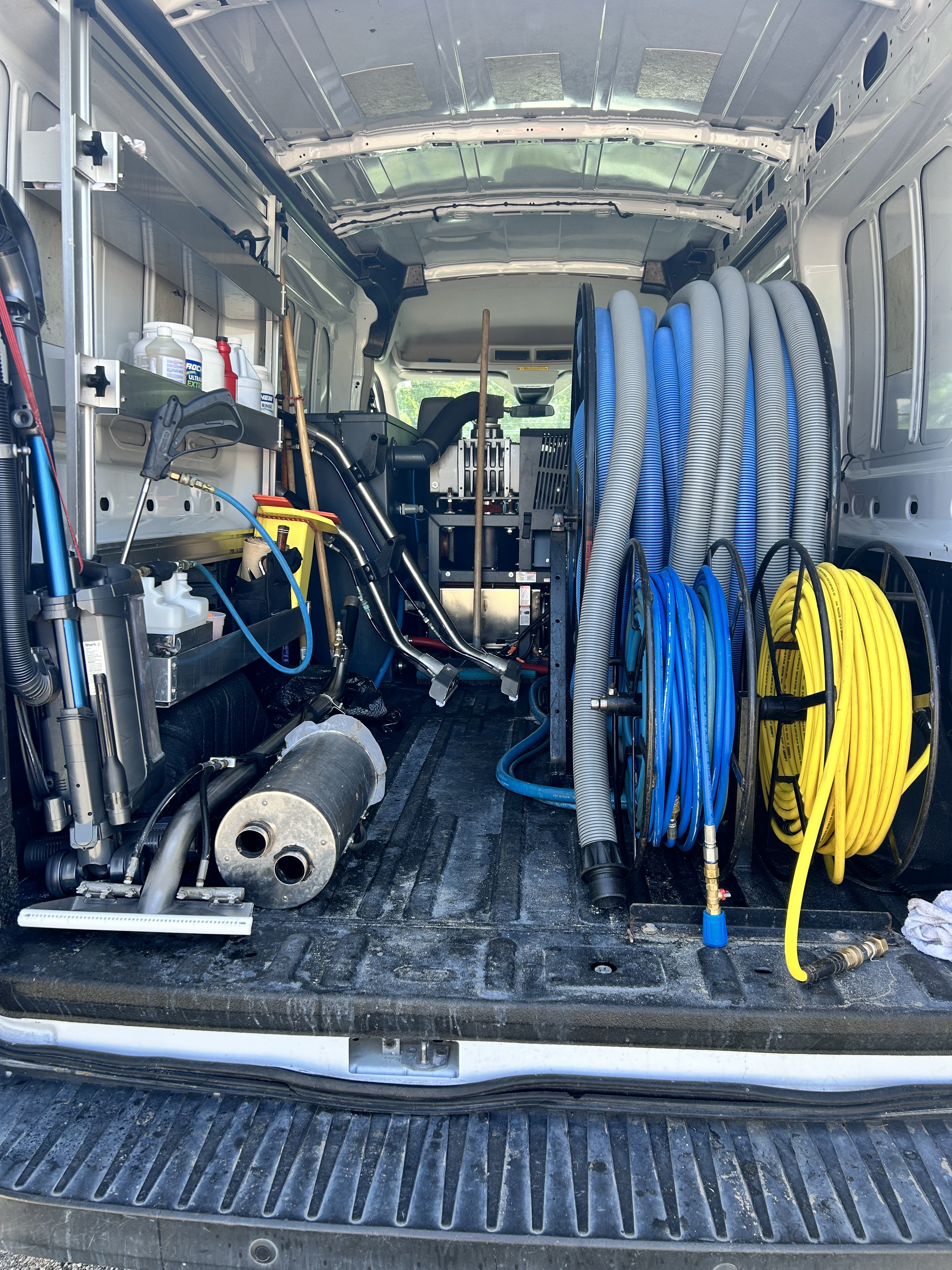 that wont fit in garage, and I get into some dicy sandy easements where my Chevy express has no problems. After I take down the buckets which come in on every job anyway, I can reach everything from outside the truck except my full size table and Tile tools which you cant see from this angle.A tall boy Transit?