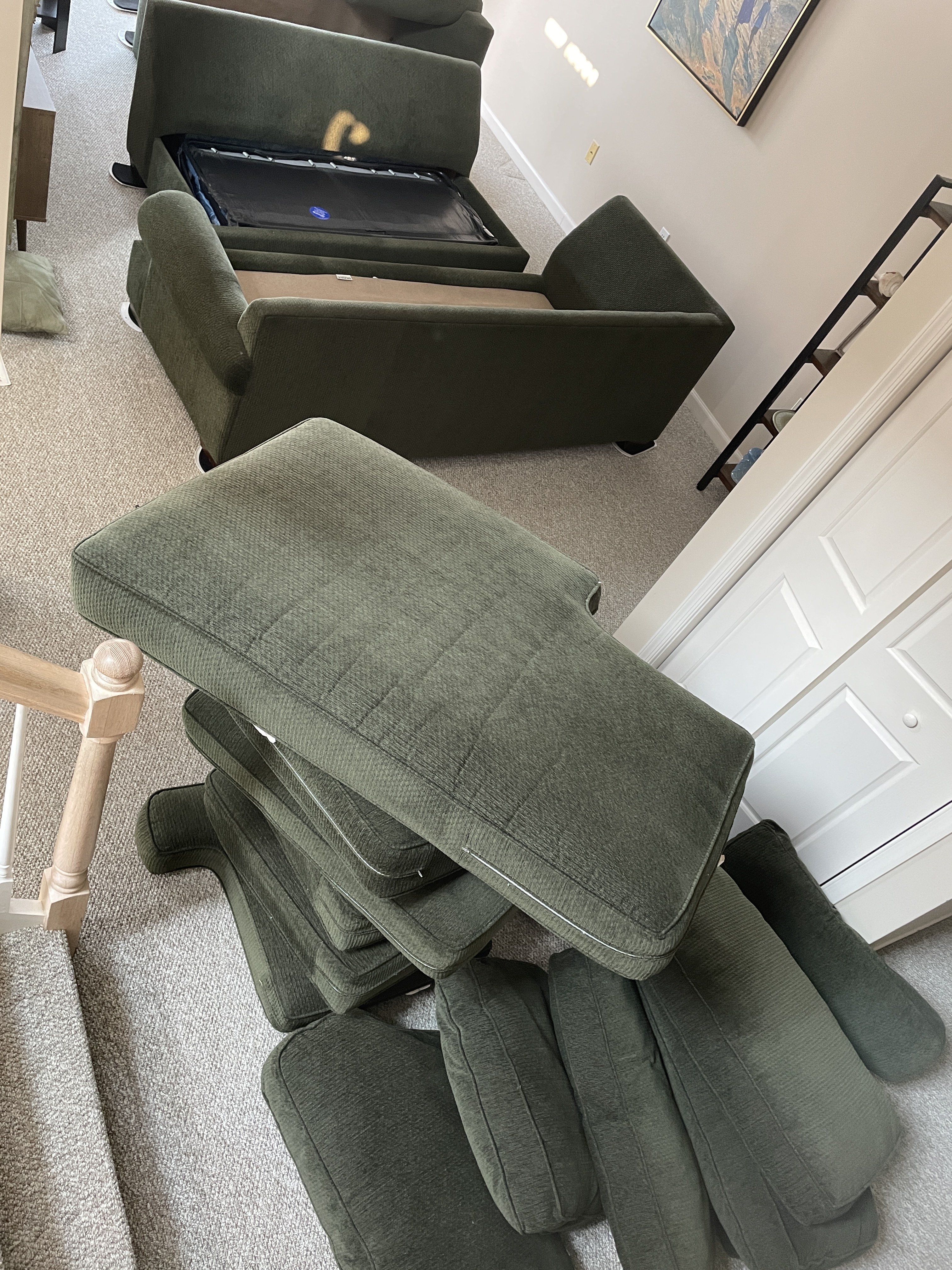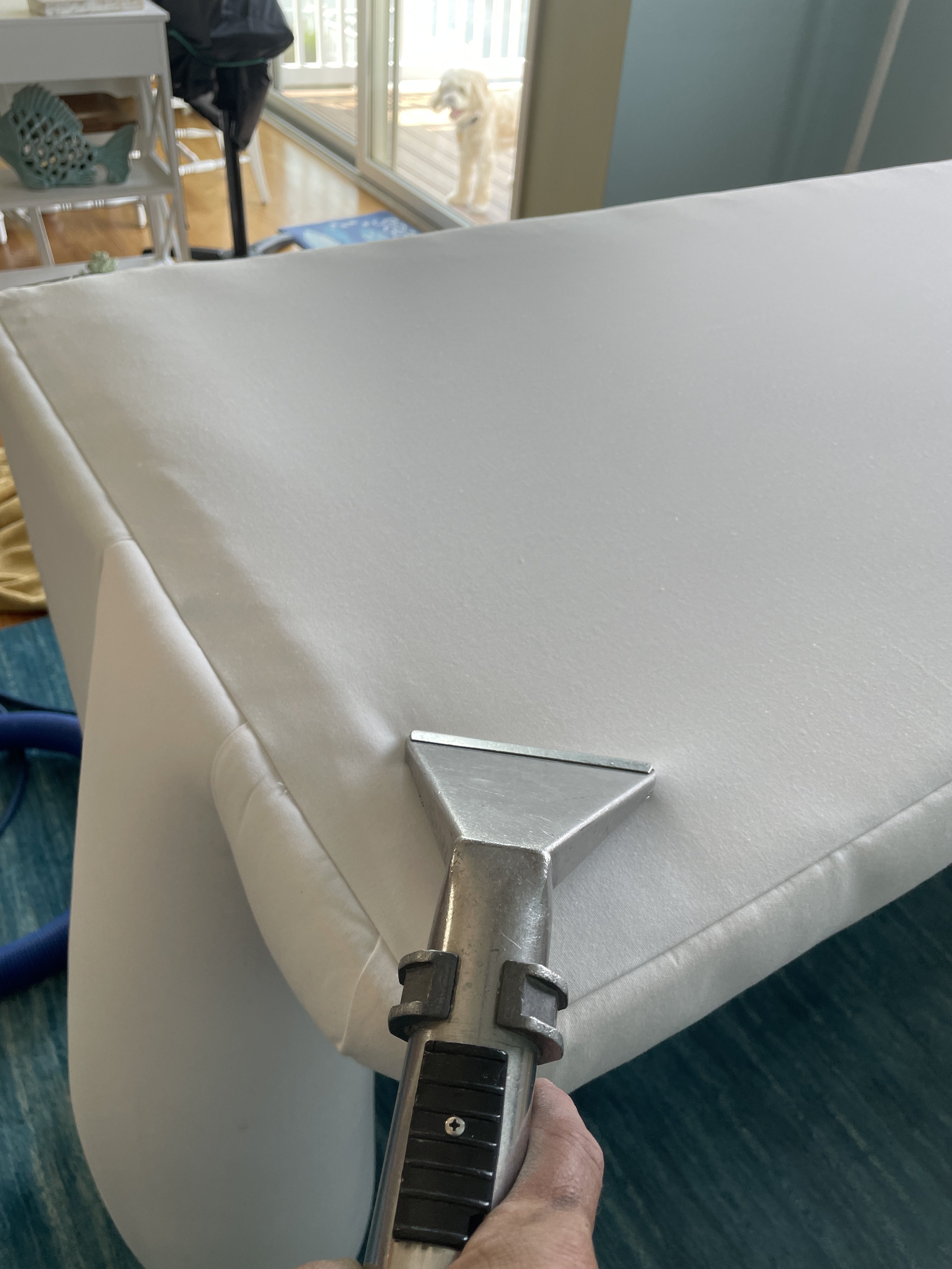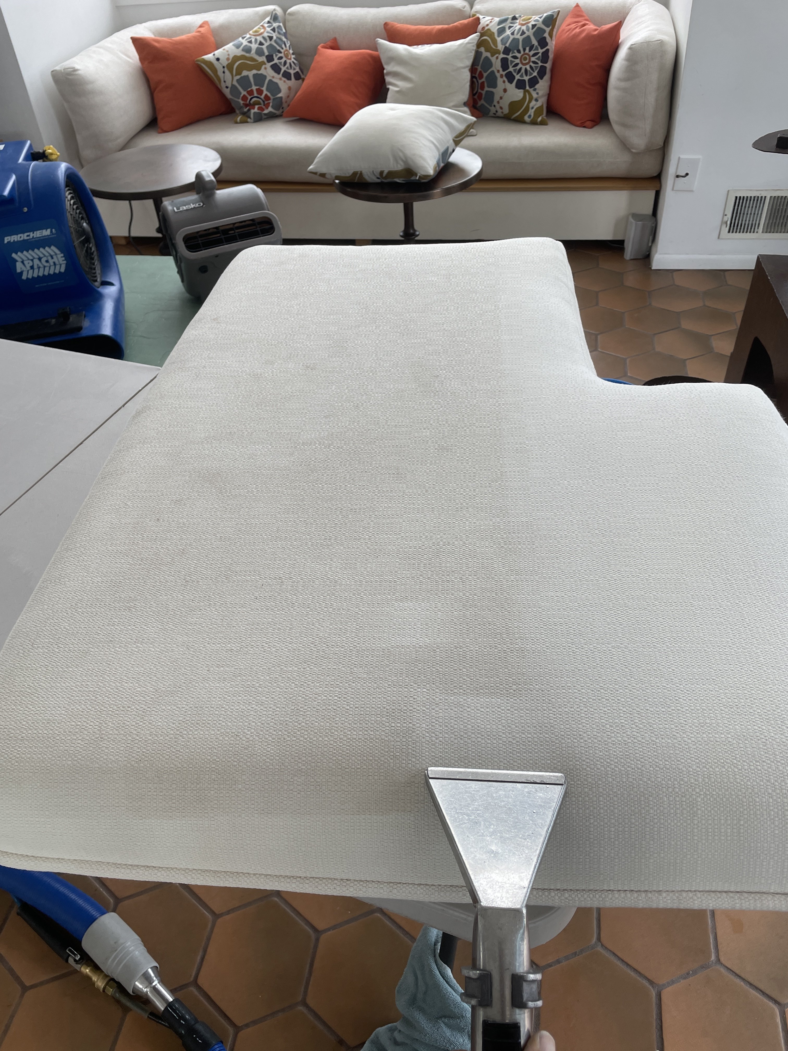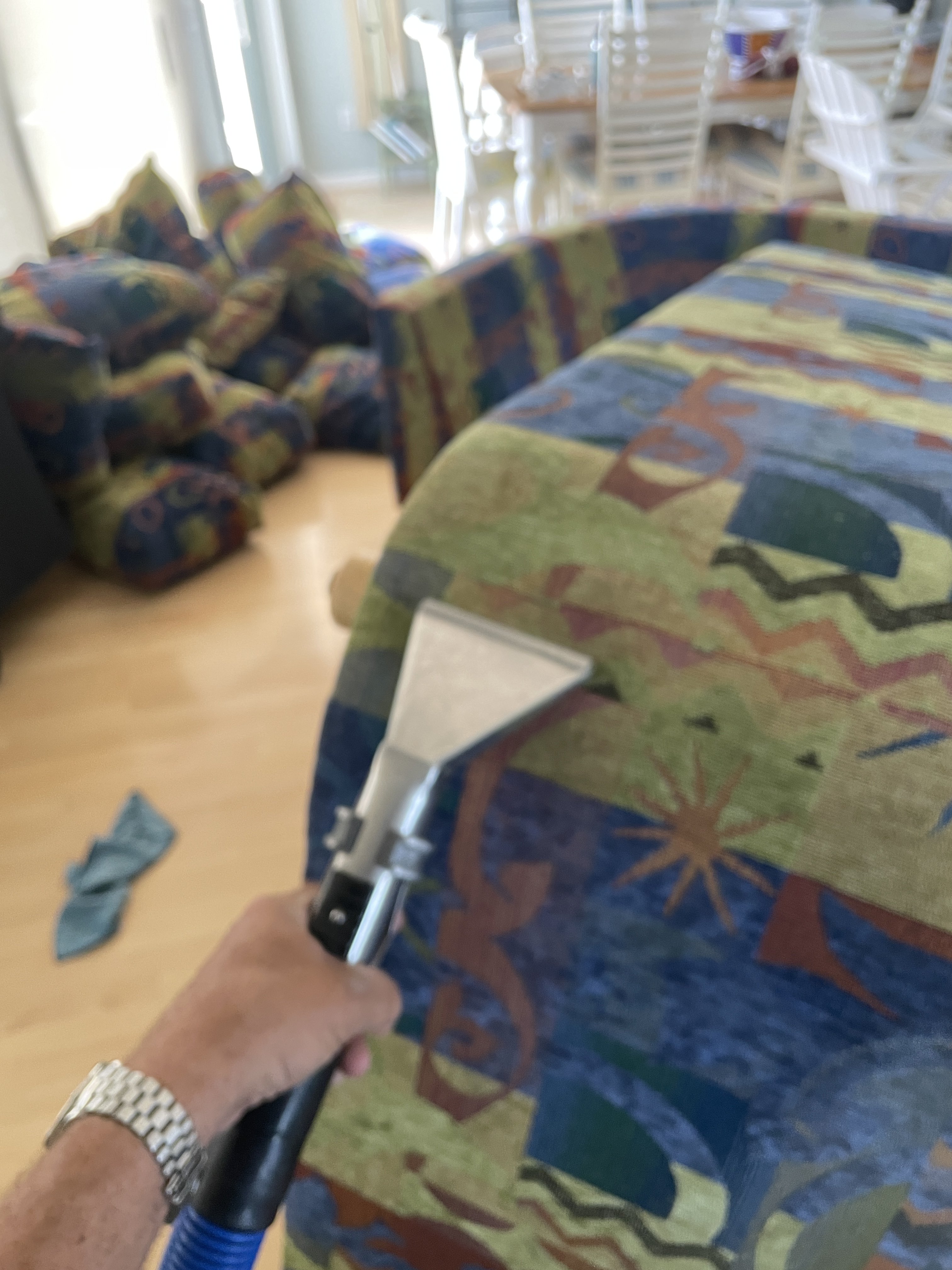 First job, sectional. Was 30 minutes into cleaning the 2 pieces with all the cushions off. I flipped the one, did my vac and cleaned. Next flipped the other piece. Vacuumed pretty hard, a lot of hair.
