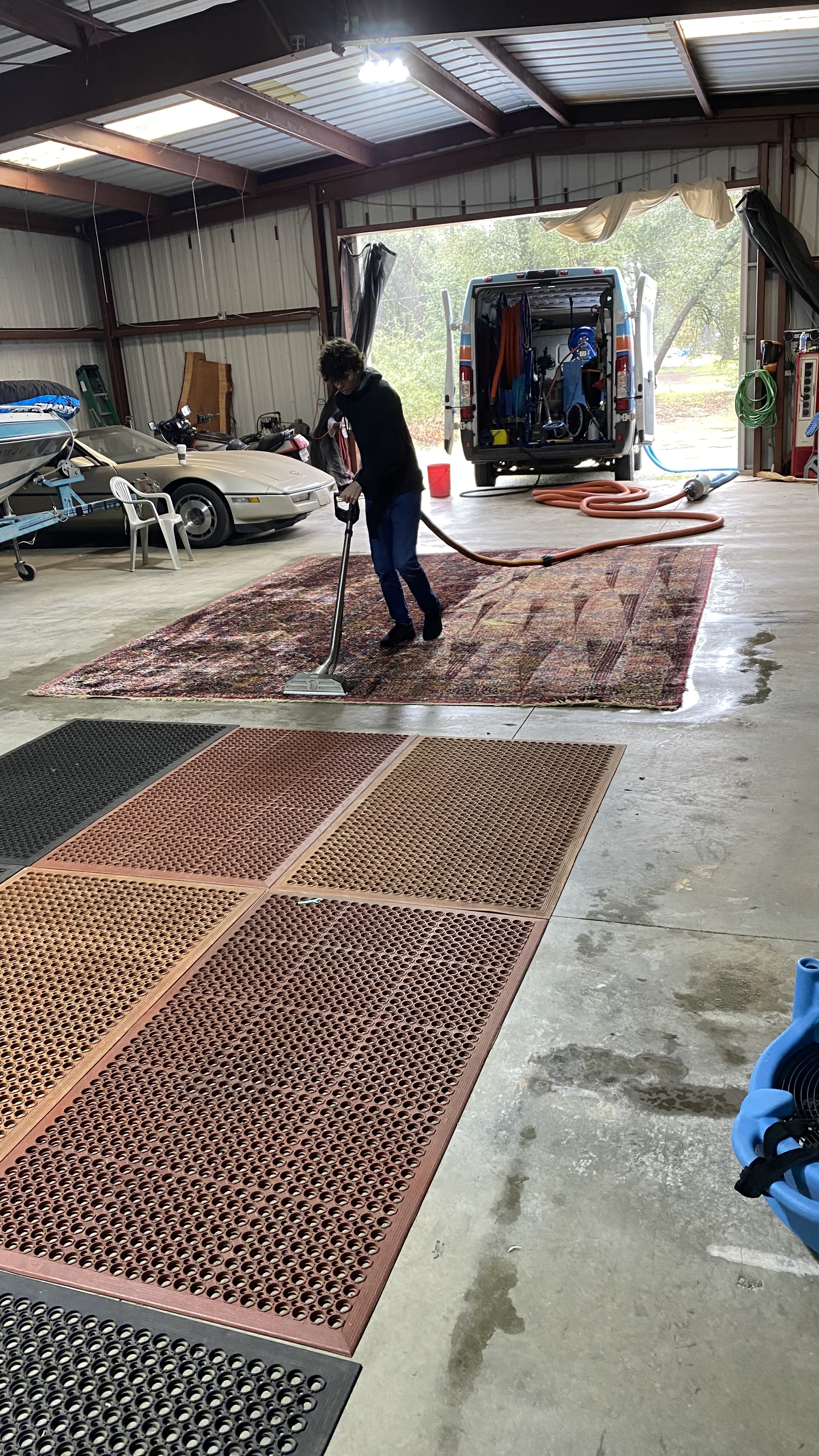 Flooded rug. Devon is doing a great job. We first had to get out all the dead frogs.