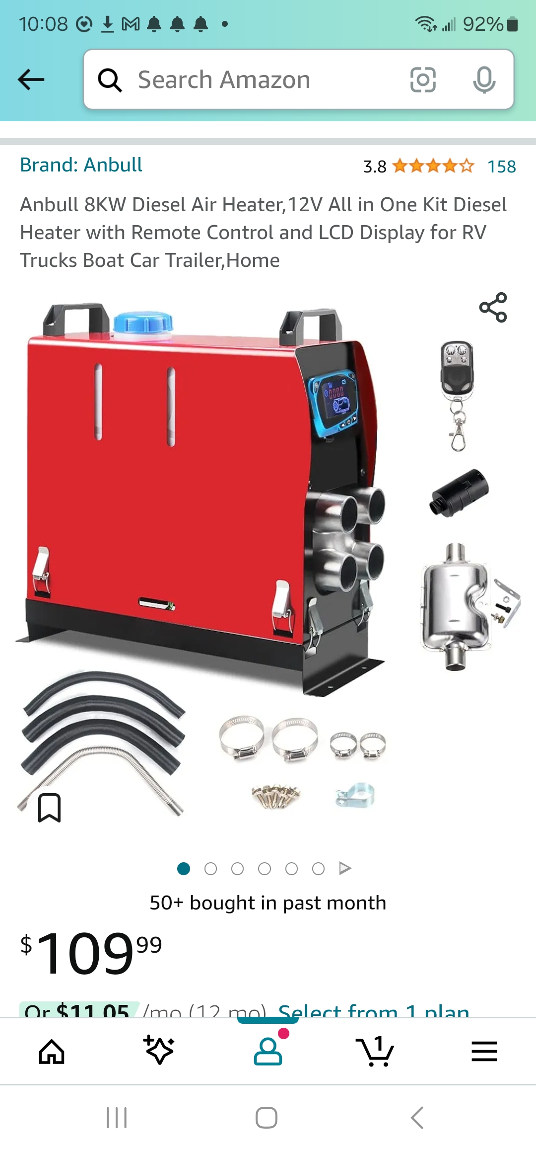Damn, that's one expensive heater.. Those Chinese diesel heaters run 30hours on 1 gallon of diesel.. That Webasto looks good and would probably be easier than running dual fuels..